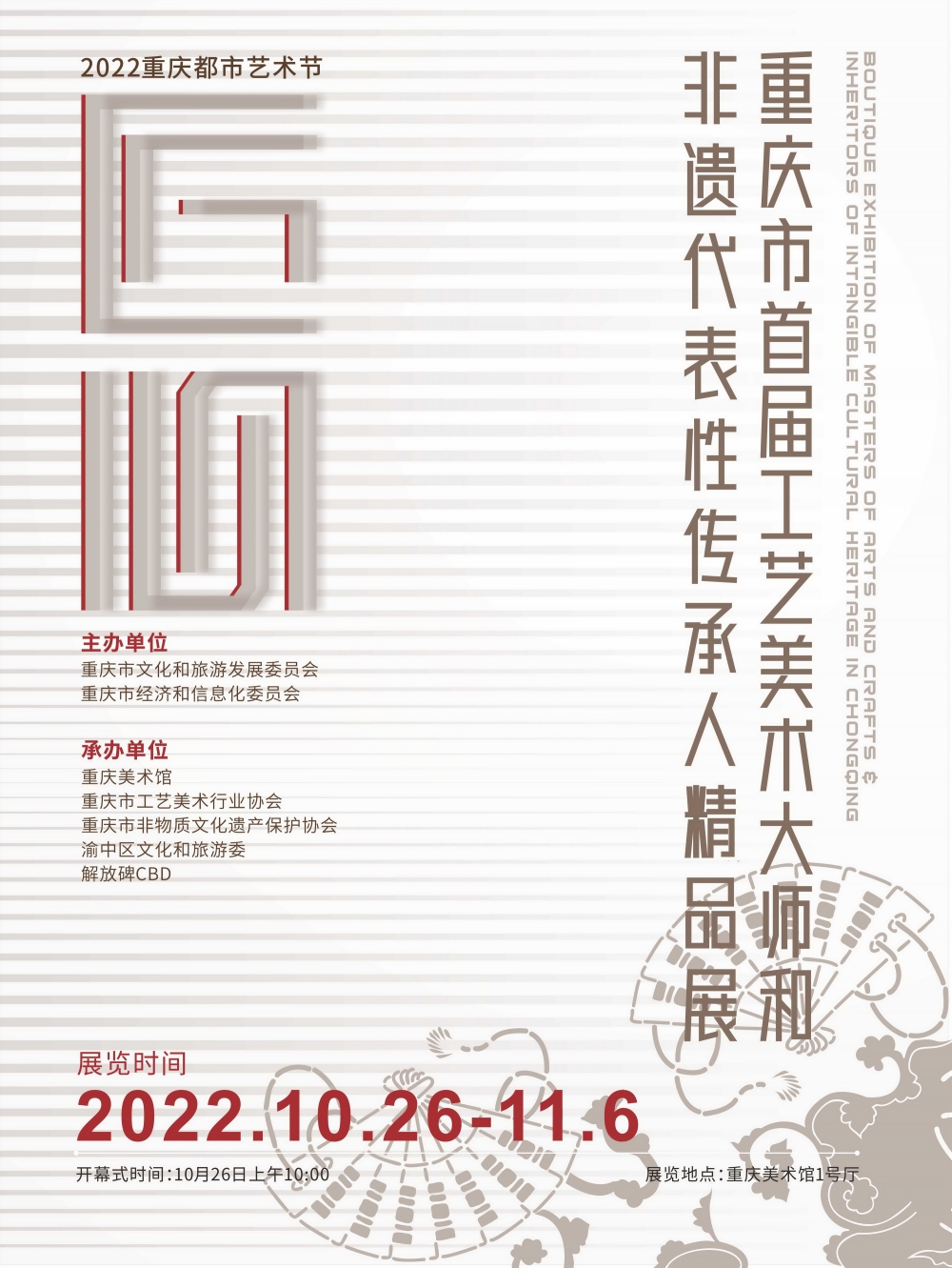 — 更多 —【展览预告】2022重庆都市艺术节 匠心——重庆市首届工艺美术大师和非遗代表性传承人精品展