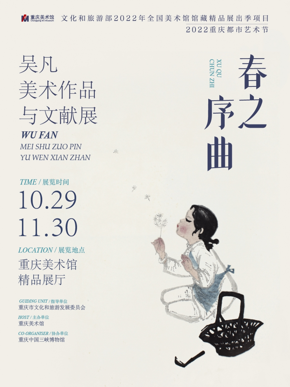 — 更多 —【展览预告】文化和旅游部2022年全国美术馆馆藏精品展出季项目 2022重庆都市艺术节 春之序曲——吴凡美术作品与文献展